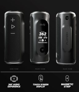 Blue Tees Golf Player+ GPS Speaker with Touch Screen Display, 10+ Hours Battery, 40,000+ Courses, Visual + Audible Distance, Hazard Distance – IPX7 Waterproof (Navy)